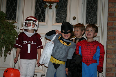 Garrett had a fun filled Halloween. He started with a party at school then got picked up early to go to Daddy's Halloween Party at Southwest Airlines. Unfortunately he fell asleep in the car so a very groggy Garrett was overwhelmed by all the adults in costume. Once we found the bouncy houses he was in his element and ready to party.